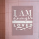 Beautiful and inspiring poster features typography in white font on dusty rose background. Self Affirming Quote: I am enough. Strong. Beautiful. Kind. Loved.