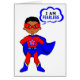 With this cute little superhero around, there's no need to worry. Our hero is wearing a cool red and blue costume. His hands sit on his hips, to show that he's ready for action, while his blue cape blows in the wind. What an inspiration this cartoon character is for the superhero in your family.