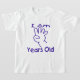 This shirt is for a four year old child. The child no longer need to say there age, just wear the shirt. This shirt would make a wonderful gift for the child turning four. The colour of the design is purple.
