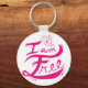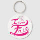 Keychain with pink, hand-illustrated "I am free" design on a white background.