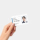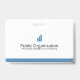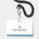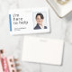 A modern ID badge for volunteers using the phrase "I'm here to help" as the introduction text. The badge design includes the volunteers ID photo as well as the volunteers name. The back shows the name of the event or organisation. This badge would also work great for sales staff.