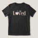 “I Am Loved” women’s T-shirt, featuring a soft floral heart design and the powerful Bible verse John 3:16. Designed with gentle pink lettering on a rich navy background, this Valentine-themed Christian tee is a meaningful reminder of God’s unconditional love.