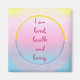 I am loved, loving, and loveable, is the affirmation on yellow, pink, and blue blends, in a yellow and blue circle. The text can be customised on the template form. Purchase at PositiveAffirmation on Zazzle.