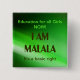 Button saying 'Education for all Girls NOW! I AM MALALA It's a basic right' - on green and black background. Words can be changed or deleted.