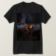 Beautiful dark t-shirt with the cover illustration from the Imaginator Press edition of Ratha's Creature, the story of a young female prehistoric cat who discovers fire, finds romance, and brings change to her clan.