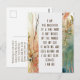 Postcard depicts a beautiful floral art design with green and tan Boho flowers. It features an encouraging Christian faith quote, "I am the daughter of a King who is not moved by the world For my God is with me and goes before me I do not fear because I am His" The greeting, prayer can be personalised or deleted for a hand written message.