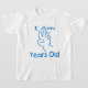 This shirt is for a three year old child. The child no longer need to say there age, just wear the shirt. This shirt would make a wonderful gift for the child turning three. The colour of the design is blue.