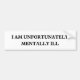 I Am Unfortunately Mentally ill funny bumper sticker