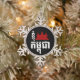 I Angkor (Heart) Cambodia (Kampuchea) Khmer Script Snowflake Pewter Christmas Ornament