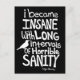 Edgar Allan Poe was a 19th century American author and poet famous for his stories of horror and the macabre. The quote on this Postcard, "I Became Insane with Long Intervals of Horrible Sanity”, was said to be written by Poe in a letter describing his state of mind due to the death of his beloved wife.