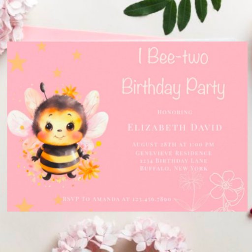 I hope you enjoy this pink background with a cute bumble bee. Perfect for a girl's 2nd birthday party! Matching invitations and birthday party supplies are available in this collection suite.
