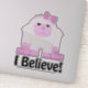 I Believe! Cute cartoon pink and white girl yeti wearing a bow sticker.