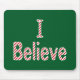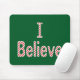 I Believe in a red and white peppermint candy cane font on evergreen for a festive Merry Christmas mousepad because I believe in Santa