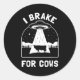 I Brake For Cows Funny Ufo Alien Abduction Consrac Classic Round Sticker