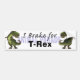 Animal Parade I Brake for TRex Heads and Tails Bumper Sticker is a fun way to show your love of animals while driving. Our cute design features our original dromedary from the front and the back on either side of the words, I Brake for TRex with the words Animal Parade in a light purple in the background. Make someone smile today with our whimsical animals.