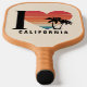 Serve up serious West Coast style with this bold set of I ❤️ California pickleball paddles—customised with your choice of background colour! Each paddle features a large “I,” a retro heart in vibrant gradient stripes (red, orange, taupe, green, teal, and blue), breezy palm trees, and customisable text so you can rep your favourite California beach town— from San Diego, Santa Monica, San Francisco, or wherever you call home.
