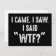 I Came. I Saw. I Said "WTF?" Funny Quote Postcard