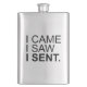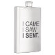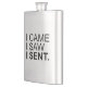 The product is a good size and came exactly as it was pictured. The lid is not attached to the flask, which could be dangerous on drunken nights... The print came out surprisingly well and looks very sharp. Would definitely recommend.