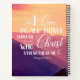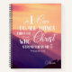 A notebook with " I can do all things through Christ who strengths me" Philippians 4:13 bible verse. It has a beautiful sunset and mountain background and can be personalised with a name or delete if don't want that.