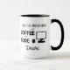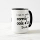 Personalised I Can Fix Anything With Coffee and Code Funny Typography Mug. Choose from many styles. Text in black reads I can fix anything with coffee and code, images of a computer screen and mug of coffee. Funny computer technology office mug. Clever gift for computer programmers, coders and coffee lovers. Geek humour.