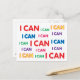 A Postcard with a Positive Affirmation " I CAN, I CAN" to encourage and convince the user that they can achieve their goals - or do anything they set their mind to. Affirmations can be used to reprogram one's subconscious mind - but the key to success lies in regular and repeated use of the affirmation coupled with a determined, excited and joyful imaging of the desired result. The person needs to see themselves succeeding - and visualise a detailed, vivid "scene" of the occassion when they reach their cherished goal. Such imaging makes a powerful impression on the subconscious mind which will then automatically start to create circumstances to manifest the desired result. Send the postcard to a friend or pin it up where you can see it everyday.