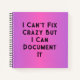 I can't fix crazy but I can document it funny notebook for HR or others. Purple and Pink gradient background.