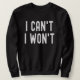 I Can't I Won't Unique Humorous Retro Lettering Sweatshirt