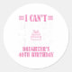 I Can't Keep Calm It's My Daughter's 40th Birthday Classic Round Sticker