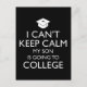 I Can’t Keep Calm – My Son Is Going To College. Funny quote accessory is a great gift for the mum or dad of a college or university student. Perfect for empty nest parents who have a son going away to college for the first time! This cool college humour funny saying design is great for the parent of a student going to higher education for the first time, a first year college student, or a student going back to school. Includes a graphic of a graduation cap.
