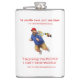 Well made flask, a little better than I had expected. Flask came in clear plastic box which gave it a nice presentation when I took it out of the zazzle packaging. Image is not printed on flask but on sticker. Don't know how this will hold up I haven't used it yet. This would make a Great gift! I plan to purchase more for friends! Cheers. I thought a little brighter than computer. Very crisp, writing wasn't