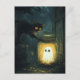 A fun Halloween scene with a ghost caught in a jar by a black cat