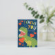 Cute Valentine's Day card for kids featuring an illustration of a green t-rex holding a red heart on a blue background with the words "I choose you". Design by Shelby Allison.