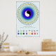 Chart of I Ching Hexagrams in circular format with the Chinese names, lines and numbers in arrangement around the Yin-Yang symbol. At the bottom are the symbols for the bi-grams and trigrams.