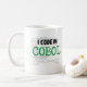 This image prominently displays the phrase "I CODE IN COBOL" at its centre. The words "I CODE IN" are written in black, while "COBOL" is highlighted in a larger, bold green font. The background consists of various lines of code in a light grey colour, which are related to the COBOL programming language. The code snippets include terms like "PERFORM," "QUICK-SORT," "LEFT-INDEX," "RIGHT-INDEX," and "PIVOT-INDEX." This image emphasizes the programmer's pride in using COBOL, a legacy programming language still in use today, especially in financial and administrative systems. The combination of the bold statement with the background code highlights the ongoing relevance and importance of COBOL in modern computing.