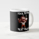 This jumbo mug showcases a hilarious monkey, wide-eyed and wearing an "I ♥ Coffee" shirt, holding up a steaming mug of coffee like it’s the key to survival. The sheer enthusiasm on this orangutang’s face perfectly captures the energy boost coffee gives us all. Below the lively orangatang, there’s a customisable space where you can add Your Funny Text Here, giving you the freedom to make your mug uniquely yours! Whether it’s a funny coffee pun, a clever quote, or your own inside joke, this jumbo mug lets you express your caffeine-fuelled humour.