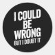 I Could Be Wrong But I Doubt It Sarcastic Men Wome Classic Round Sticker