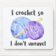 Great gift for crocheters. "I crochet so I don't unravel" script with blue and purple watercolor balls of yarn.