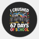 I Crushed 67 Days Of School For Kids Monster Truck Classic Round Sticker