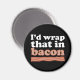 I’d Wrap That in Bacon magnet. A featuring the phrase “I’d Wrap That in Bacon” in Cooper Black font above a crispy strip of bacon. A great gift for bacon lovers and anyone else who’d wrap that in bacon.