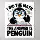 I Did The Math The Answer Is Penguin Funny Math Te Poster