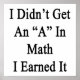 I Didn't Get An A In Math I Earned It Poster