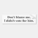 I Didn't Vote For Him Bumper Sticker