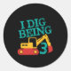 I Dig Being 3 Excavator Birthday Boy Turning Three Classic Round Sticker