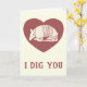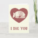 This cute valentine's day card features an illustration of an armadillo in cream or ivory against a cranberry red coloured heart with the message "I Dig You" below and the message "Happy Valentine's Day" inside. This simple card is perfect for giving to your boyfriend or husband or to anyone who loves armadillos.
