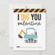 This valentine features a construction vehicle for a fun card for kids to give to their friends!
