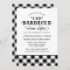 A festive and stylish wedding welcome reception invitation for a casual backyard BBQ event. Text includes "Join us for an "I do" Barbecue Engagement Party" honouring the future bride and groom. Black and white design colours.