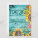 Rustic country, unique aqua turquoise wood and sunflowers couples shower engagement BBQ invitations- Weathered, distressed teal turquoise barn wood planks background. Side and bottom bordered with rustic watercolor floral sunflowers, cattails, and leaves in earthy yellows, browns, greens, and a touch of red. Reads 'Please Join Us for an I DO BBQ Couples Shower' in matching teal, western style lettering. Party details, including RSVP information and store registry, are below. Back has matching solid teal background, which may be changed to any shade. Note: All images are printed. Use the Customise It button to change anything - font styles, sizes, colours, or placement. Elegant country western invites for summer or fall couples shower, outdoor rustic engagement party, barn weddings, garden wedding theme, and western or vintage wedding themes. We have more couples BBQ invitations and rustic party decor in our Zazzle.com/angela65* shop.