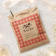 The perfect finishing touch for an I Do BBQ engagement party or rehearsal dinner favour, this favour bag has the couple's monogram among grilling tools and a custom message all with a cheerful red picnic blanket pattern.