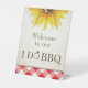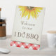 Welcome your guests in style with this rustic I Do BBQ wedding welcome sign, designed to coordinate perfectly with I Do BBQ decorations and party decoration kits. Featuring a red gingham pattern paired with bright yellow sunflowers, this sign adds a cheerful, country-inspired touch to any celebration.