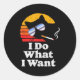 I Do What Want Cool Funny Cat & Retro Sungles Classic Round Sticker